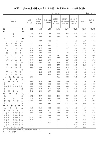 表E22 參加職業訓練後沒有從事相關工作原因-按人口特性分(續)