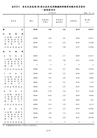 表E23-1 原住民族想要(再)參加政府或間機構辦理職業訓練的需求情形