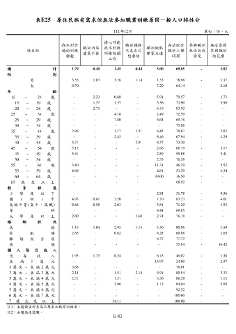 表E25 原住民族有需求但無法參加職業訓練原因-按人口特性分
