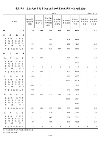 表E25-1 原住民族有需求但無法參加職業訓練原因-按地區別分