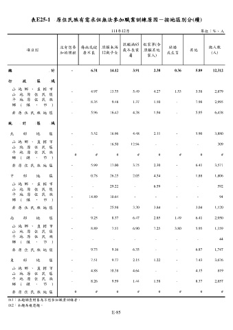 表E25-1 原住民族有需求但無法參加職業訓練原因-按地區別分(續)