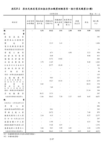 表E25-2 原住民族有需求但無法參加職業訓練原因-按行業及職業分(續)