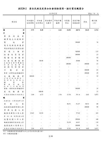 表E28-2 原住民族沒有參加社會保險原因-按行業及職業分