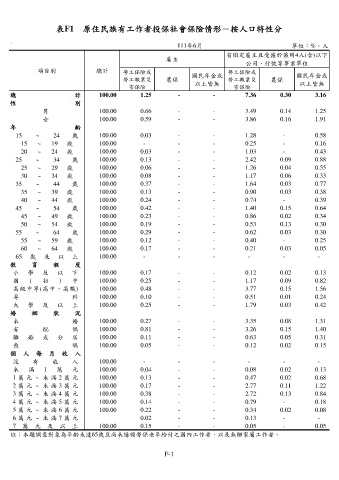 表F1 原住民族有工作者投保社會保險情形-按人口特性分