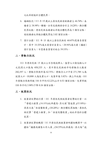 6. 婚姻狀況:111 年 15 歲以上原住民族有配偶者占 46.74% 未
