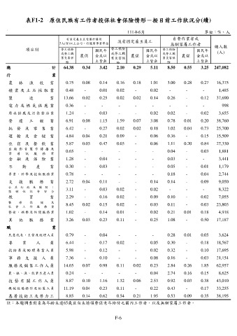 表F1-2 原住民族有工作者投保社會保險情形-按目前工作狀況分(續)