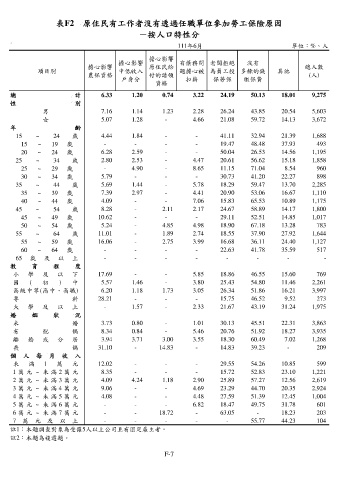表F2 原住民有工作者沒有透過任職單位參加勞工保險原因