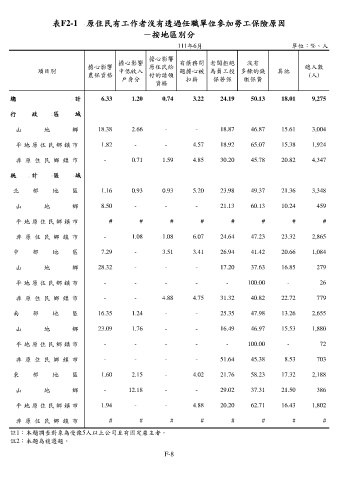 表F2-1 原住民有工作者沒有透過任職單位參加勞工保險原因