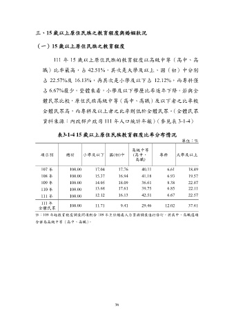 (一)15 歲以上原住民族之教育程度