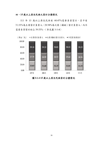 111 年 15 歲以上原住民族有 60.47%需要負責家計,其中有