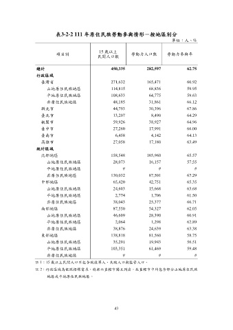 表3-2-2 111 年原住民族勞動參與情形-按地區別分