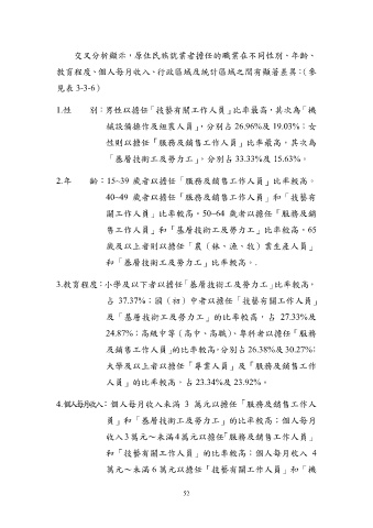 3.教育程度:小學及以下者以擔任「基層技術工及勞力工」比率較高,