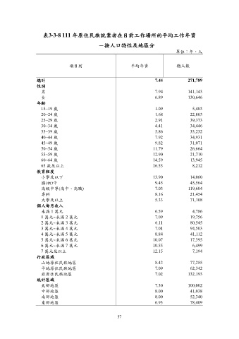 表3-3-8 111 年原住民族就業者在目前工作場所的平均工作年資