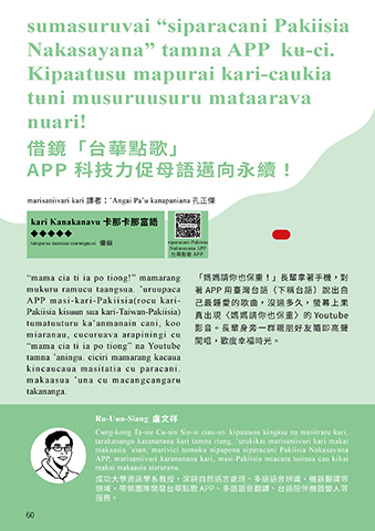 mukʉrʉ ramucu taangsua. ’uruupaca 著 APP 用臺灣台語(下稱台語)說出自
