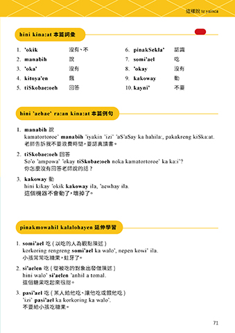 1. ’okik 沒有、不 6. pinakSekla’ 認識