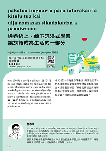 akaw a kakituluan” tua kinacalisianan, 民身分,通過北排灣語高級認證。