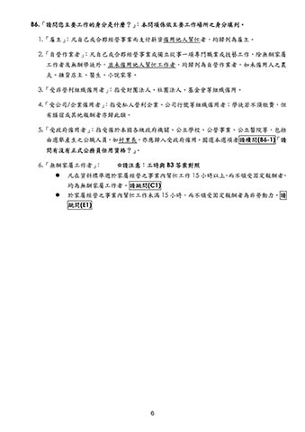 6.「無酬家屬工作者」: ☆請注意:工時與 B3 答案對照