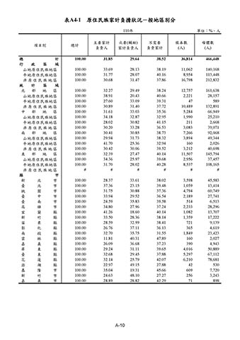 山地原住民族地區 100.00 33.69 28.13 38.19 11,062 140,168