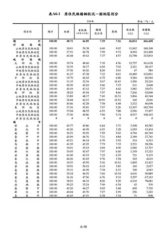 平地原住民族地區 100.00 37.50 44.86 7.90 9.74 8,537 108,165