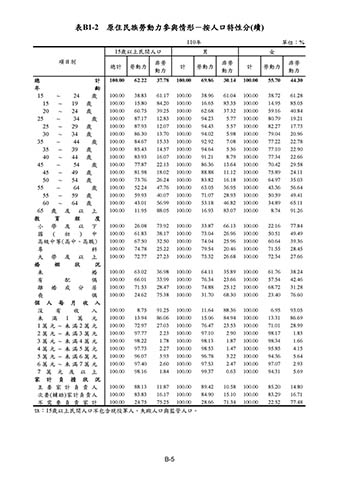 表B1-2 原住民族勞動力參與情形-按人口特性分(續)