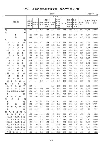 表C1 原住民族就業者的行業-按人口特性分(續)