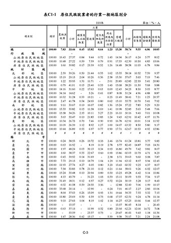 非 原 住 民 族 地 區 100.00 0.79 41.01 0.13 23.40 0.35 1.45 15.68 58.20 11.30 7.68 9.88