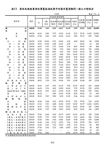 表C2 原住民族就業者從事農林漁牧業平均每年農閒期間-按人口特性分