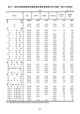 表C3 原住民族就業者從事農林漁牧業農閒期間打零工情形-按人口特性分