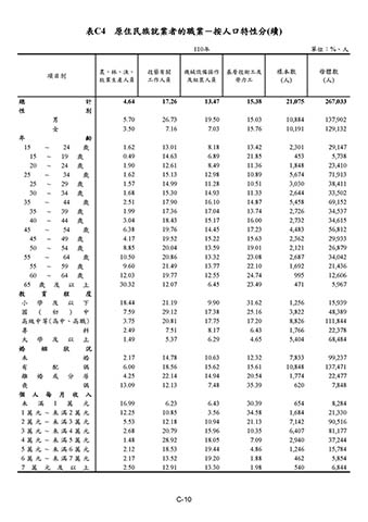 表C4 原住民族就業者的職業-按人口特性分(續)