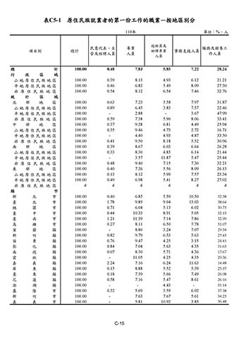 表C5-1 原住民族就業者的第一份工作的職業-按地區別分