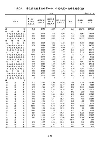 表C5-1 原住民族就業者的第一份工作的職業-按地區別分(續)