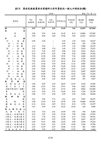 表C6 原住民族就業者目前場所工作年資狀況-按人口特性分(續)