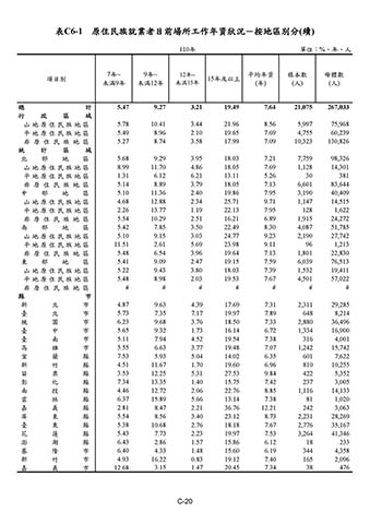 表C6-1 原住民族就業者目前場所工作年資狀況-按地區別分(續)