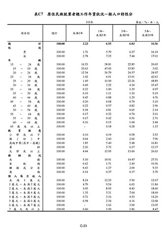 表C7 原住民族就業者總工作年資狀況-按人口特性分