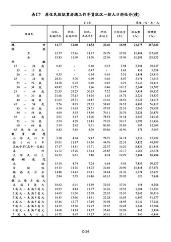 表C7 原住民族就業者總工作年資狀況-按人口特性分(續)