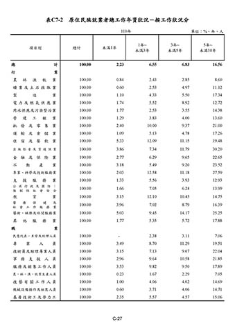 表C7-2 原住民族就業者總工作年資狀況-按工作狀況分