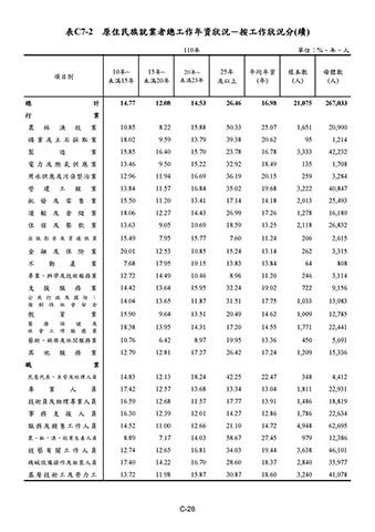 表C7-2 原住民族就業者總工作年資狀況-按工作狀況分(續)