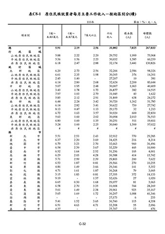 表C8-1 原住民族就業者每月主要工作收入-按地區別分(續)