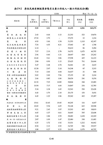 表C9-2 原住民族有酬就業者每月主要工作收入-按工作狀況分(續)