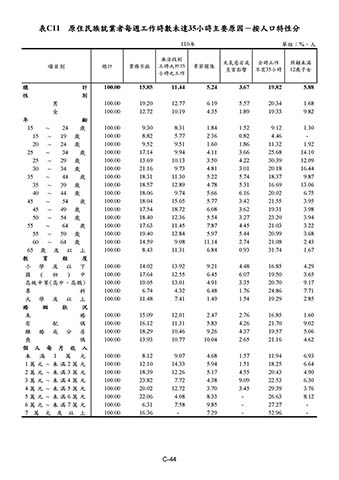 表C11 原住民族就業者每週工作時數未達35小時主要原因-按人口特性分