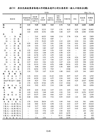 表C11 原住民族就業者每週工作時數未達35小時主要原因-按人口特性分(續)