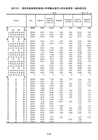 表C11-1 原住民族就業者每週工作時數未達35小時主要原因-按地區別分