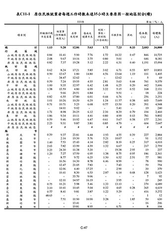 表C11-1 原住民族就業者每週工作時數未達35小時主要原因-按地區別分(續)