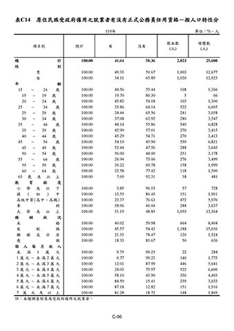 表C14 原住民族受政府僱用之就業者有沒有正式公務員任用資格-按人口特性分