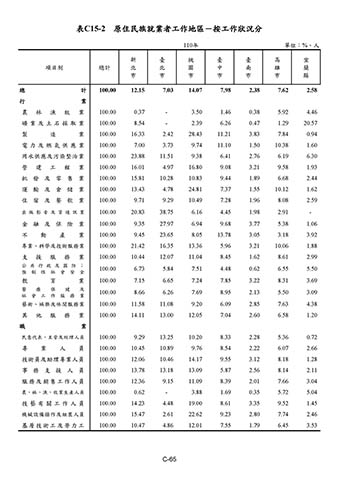 表C15-2 原住民族就業者工作地區-按工作狀況分