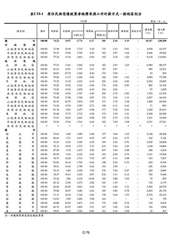 表C18-1 原住民族受僱就業者經濟來源工作計薪方式-按地區別分
