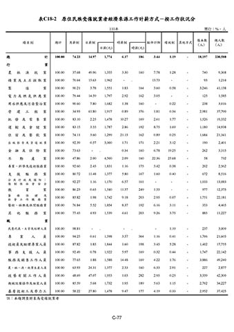 表C18-2 原住民族受僱就業者經濟來源工作計薪方式-按工作狀況分