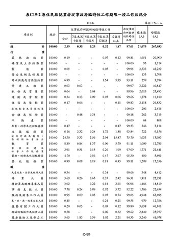 表C19-2 原住民族就業者從事政府臨時性工作期限-按工作狀況分