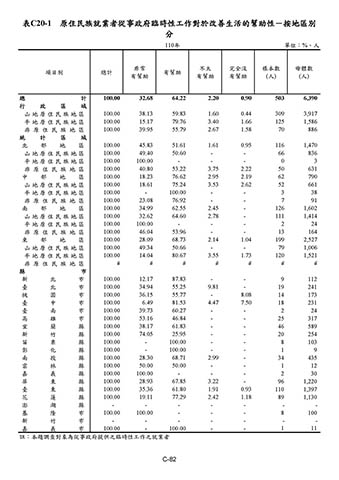 表C20-1 原住民族就業者從事政府臨時性工作對於改善生活的幫助性-按地區別