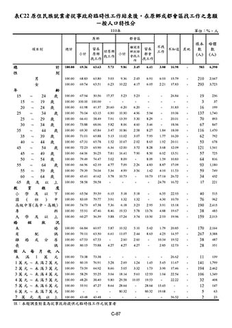 表C22 原住民族就業者從事政府臨時性工作結束後,在原鄉或都會區找工作之意願